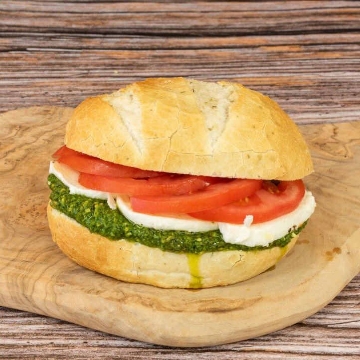 Pesto, mozzarella, tomaat,pijnboompitten, rucola